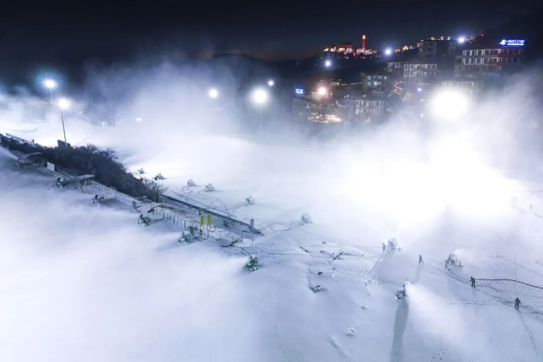▲浙江湖州安吉县,滑雪场加紧造雪,为接待冰雪运动爱好者做准备