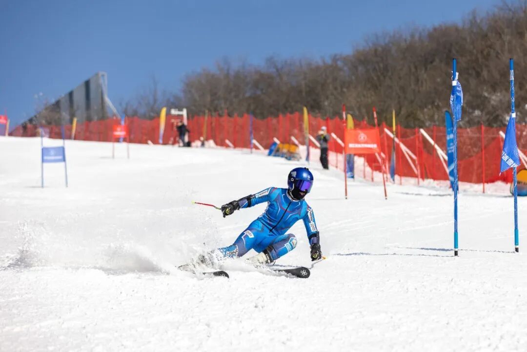 ▲一名选手在浙江湖州安吉县参加2026年长三角滑雪公开赛高山回转项目比赛