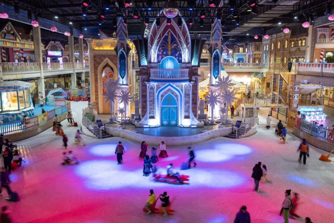 ▲游客在浙江湖州体验冰上娱乐项目