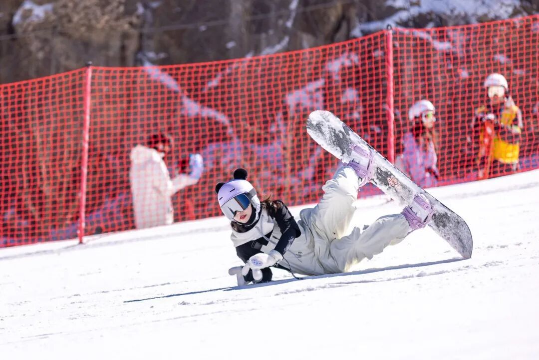 ▲浙江湖州安吉县,一名来自福建的游客在滑雪场摔倒后翻身