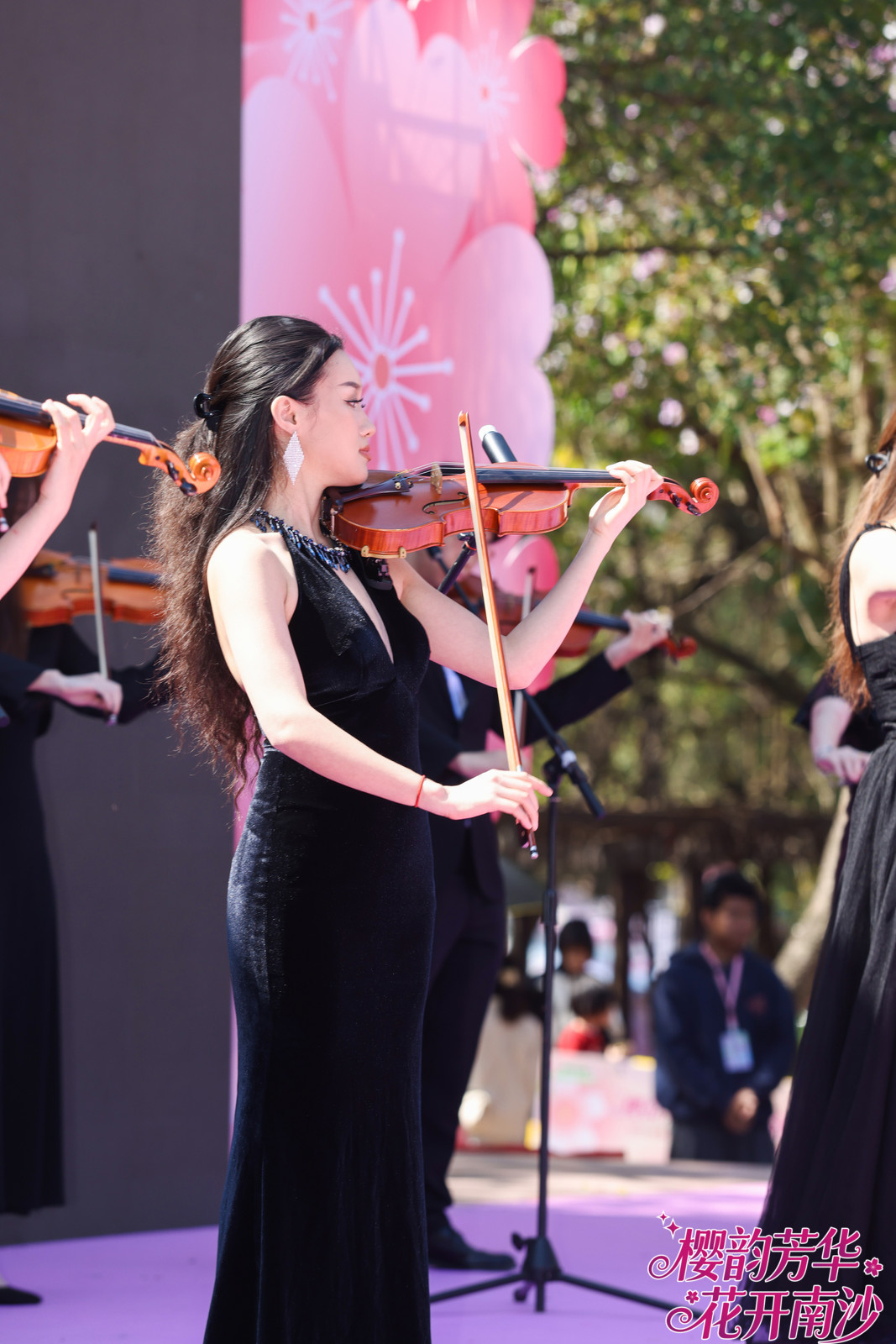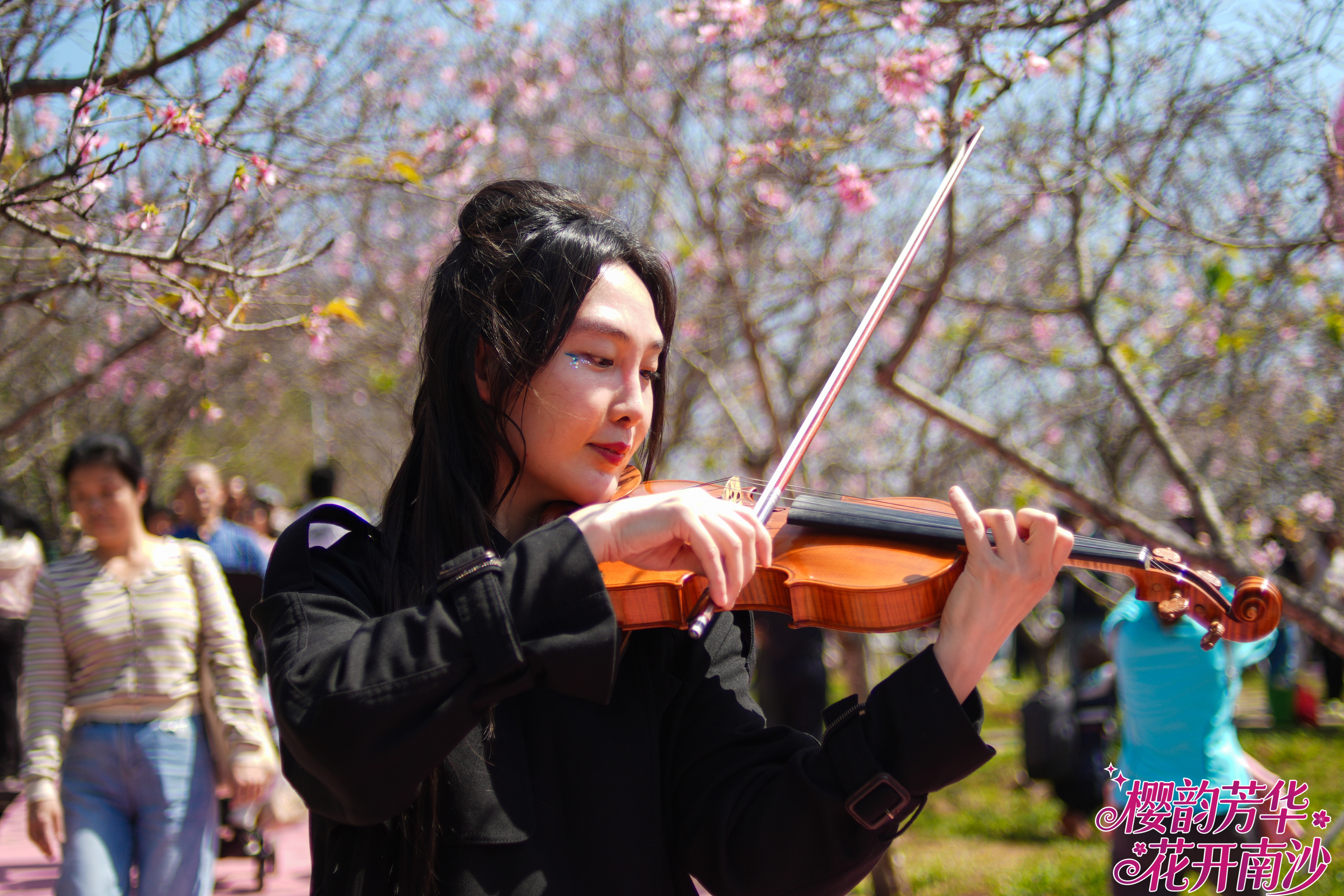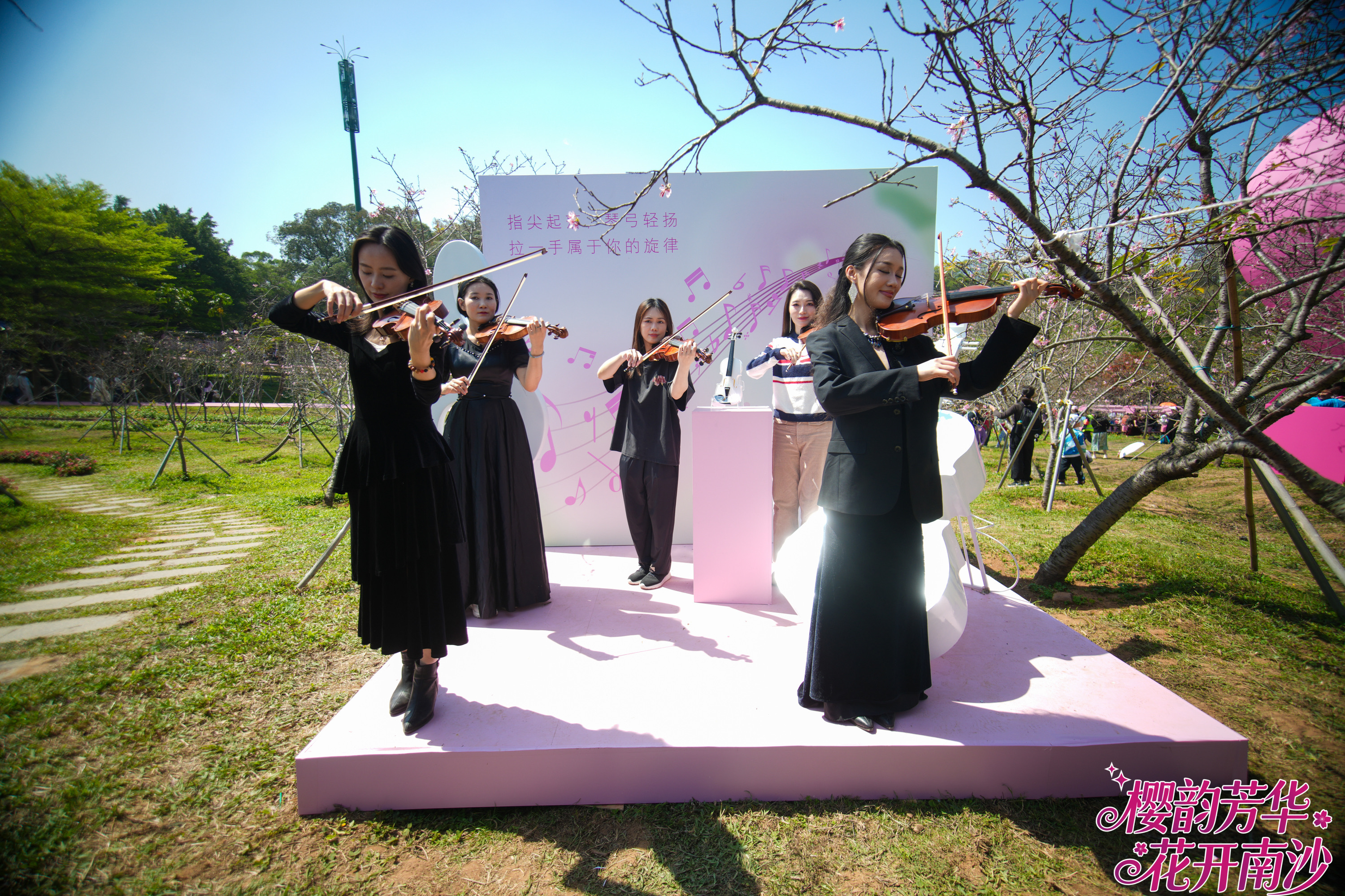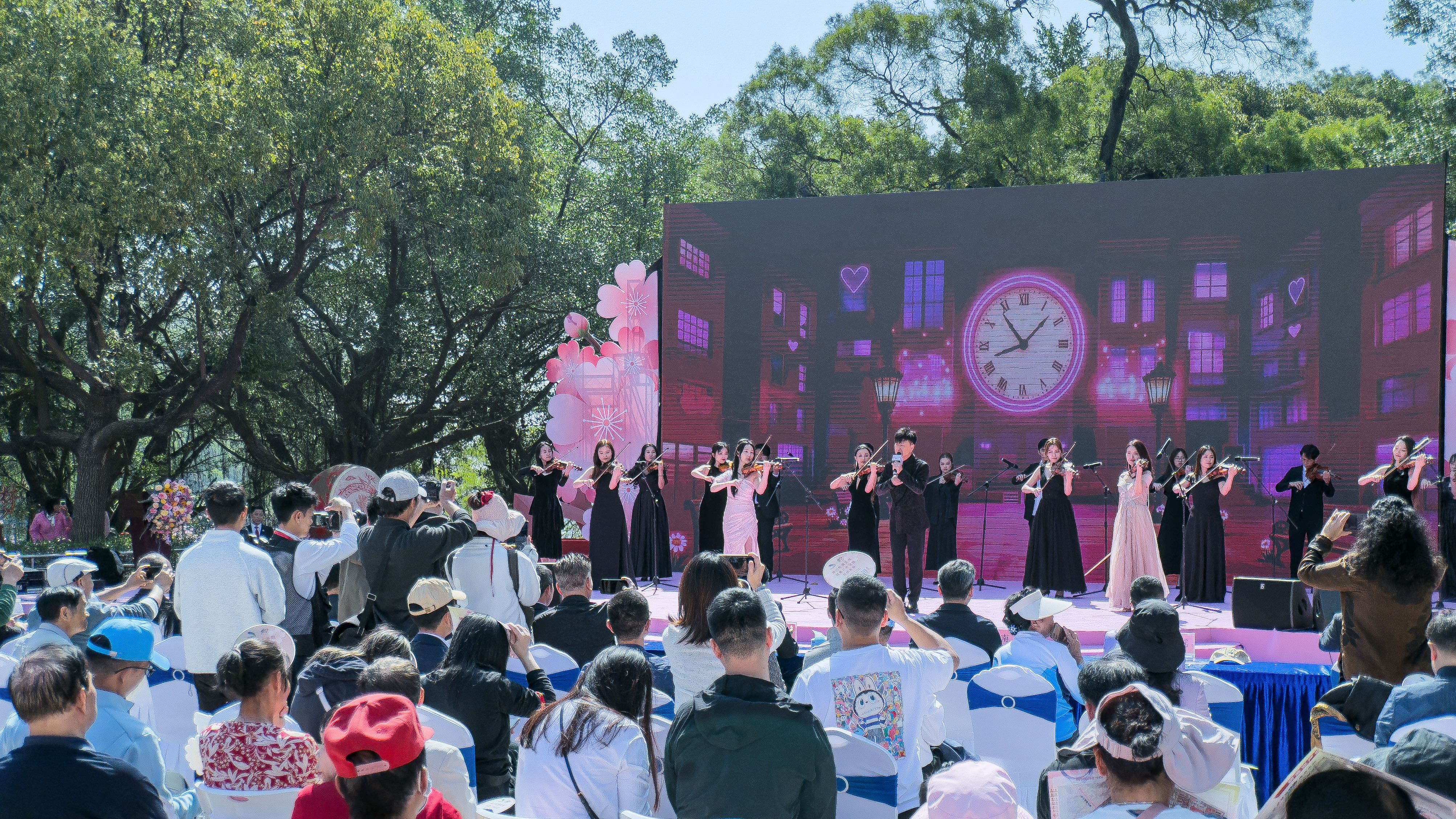 这支特别的合奏团,源于一次“群众票选”。樱花节开幕前,主办方发起“樱乐由你定”乐器评选,邀请市民游客投票选出最期待在樱花树下听到的乐器。经过热烈反响,“乐器皇后”小提琴以最高票数脱颖而出。随后,面向社会公开招募演奏者的消息发出,吸引了粤港澳大湾区众多小提琴手踊跃报名。